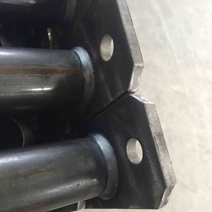 c、繼續(xù)穿立柱,將墊塊墊到后一個(gè)立柱上,將前一個(gè)立柱移到固定位置。
